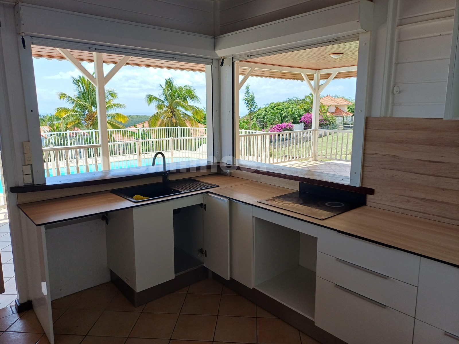 Belle villa de plain pied de type T4 avec piscine sur les hauteurs de CASE PILOTE. Le domaine est entièrement clôturé avec un portail électrique pour l'entrée principale. La villa comprend 3 chambres, 3 salles d'eau complètes, un séjour lumineux, une cuisine fermée, un W.C indépendant, une buanderie séparée, une large terrasse et une piscine.